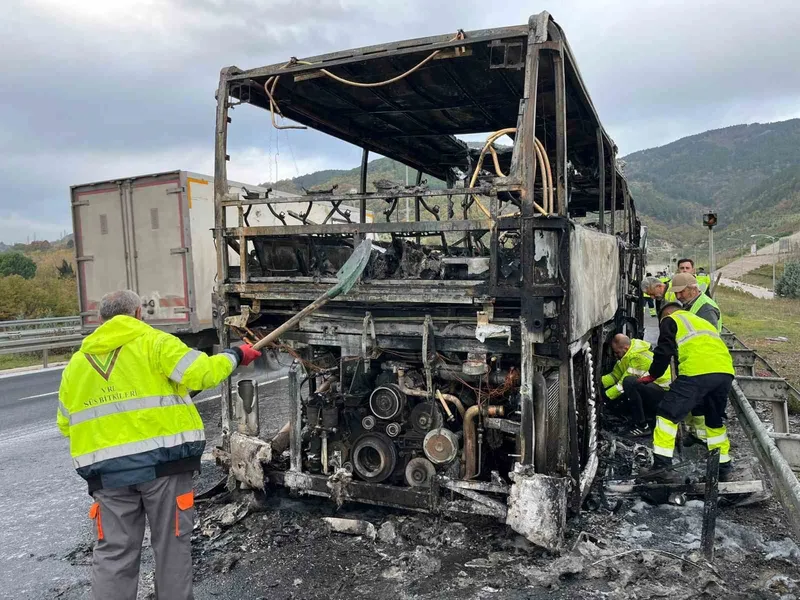 Gebze-Orhangazi-İzmir Otoyolu Orhangazi Tüneli yakınlarında meydana gelen otobüs yangınında Çanakkale’nin Lapseki ilçesinden İstanbul’a geziye giden öğrencileri taşıyan otobüs motor bölümünden alev aldı. Sürücünün emniyet şeridine çekip öğrencileri tahliye ettiği olayda otobüs alev topuna döndü. Otobüs itfaiye ekiplerinin müdahalesi ile söndürüldü.