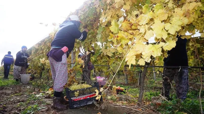 Dünyaca ünlü Sultani çekirdeksiz üzümünün yetiştirildiği Manisa’nın Sarıgöl ilçesinde kış aylarına girilmesine rağmen üzüm hasadı devam ediyor.