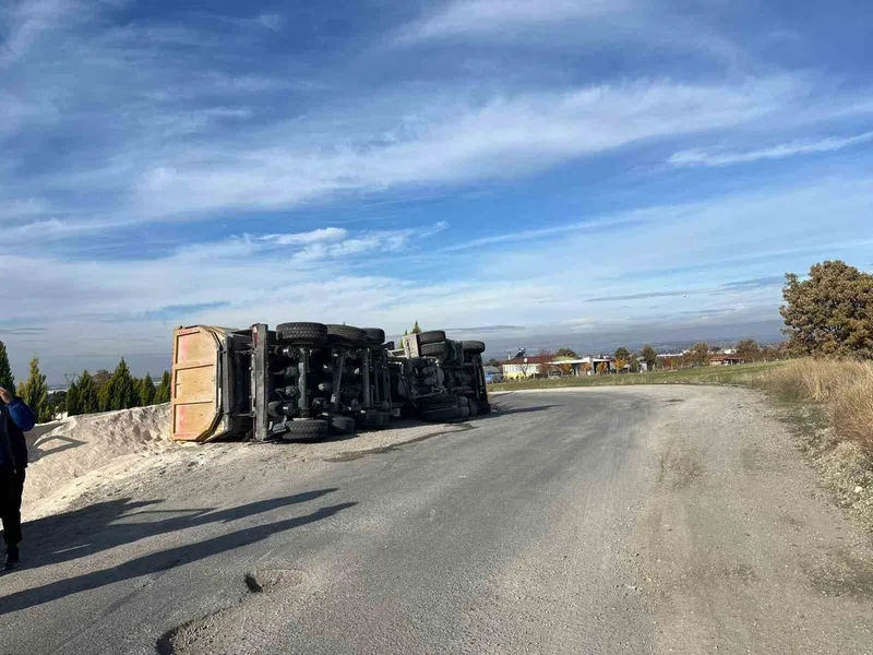 Uşak’ta tır yan yattı: 1 yaralı